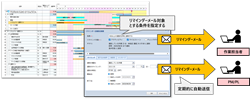 SynViz S2の特長的なオプション機能に「リマインダー機能」があります。期日が接近している作業や実績未入力の作業など、指定した条件に合致する作業の一覧をリマインダーメールとして自動送信できるようになります。