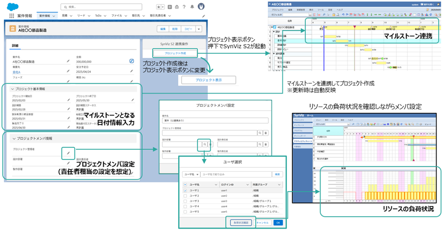 SynViz S2 for Salesforceには下記のような部門間の連携を強化する機能があり、より効果的な工程管理が可能になります。