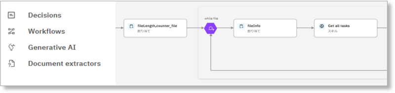 ビジネス・ルールやワークフロー、生成AIを用いた処理をローコードで設計しカスタム・スキルとして実装することができます。